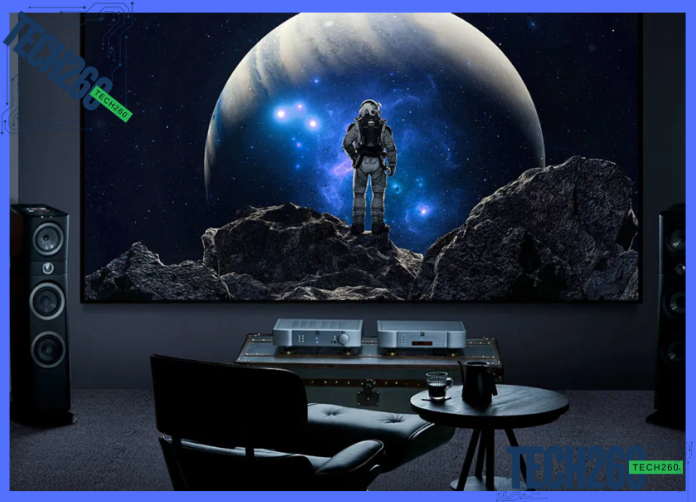 La pantalla es tu lienzo. Una pantalla tensada de tela mate (gain 1.0 o 1.1) hace una diferencia ABISMAL comparada con una pared. Refleja la luz de manera uniforme y los colores se ven fieles. En México, marcas como Elite Screens o incluso opciones tensadas en Amazon ofrecen buena relación calidad-precio. El tamaño ideal: que el ancho de la pantalla sea aproximadamente 1/3 de la distancia desde donde te sientas.